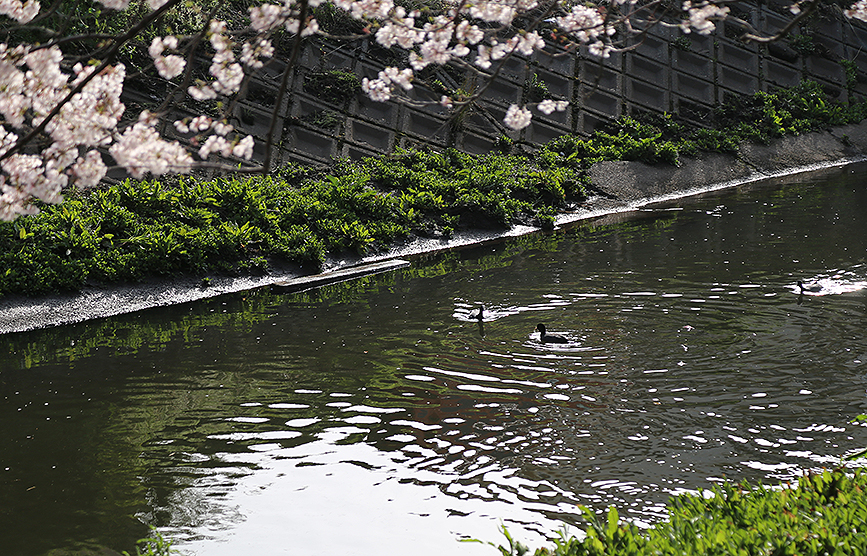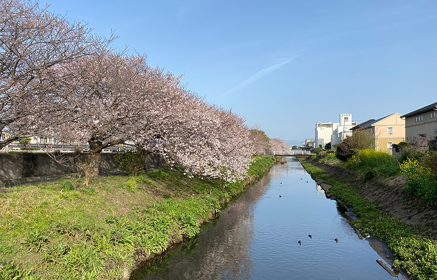 沼津市内でも随一の長さを誇る桜の名所、白隠ざくら(沼川沿いの桜)。