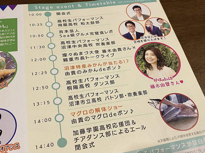 水産海浜課の漆畑さんは「深海エビと干物の「沼津小判めし」をはじめ、おいしいグルメが楽しめます!個人的には藤木由貴さんと市長のトークライブも楽しみです!すごい楽しみです!グルメもステージイベントも楽しんで下さい!!」と熱く語ってくれました。
