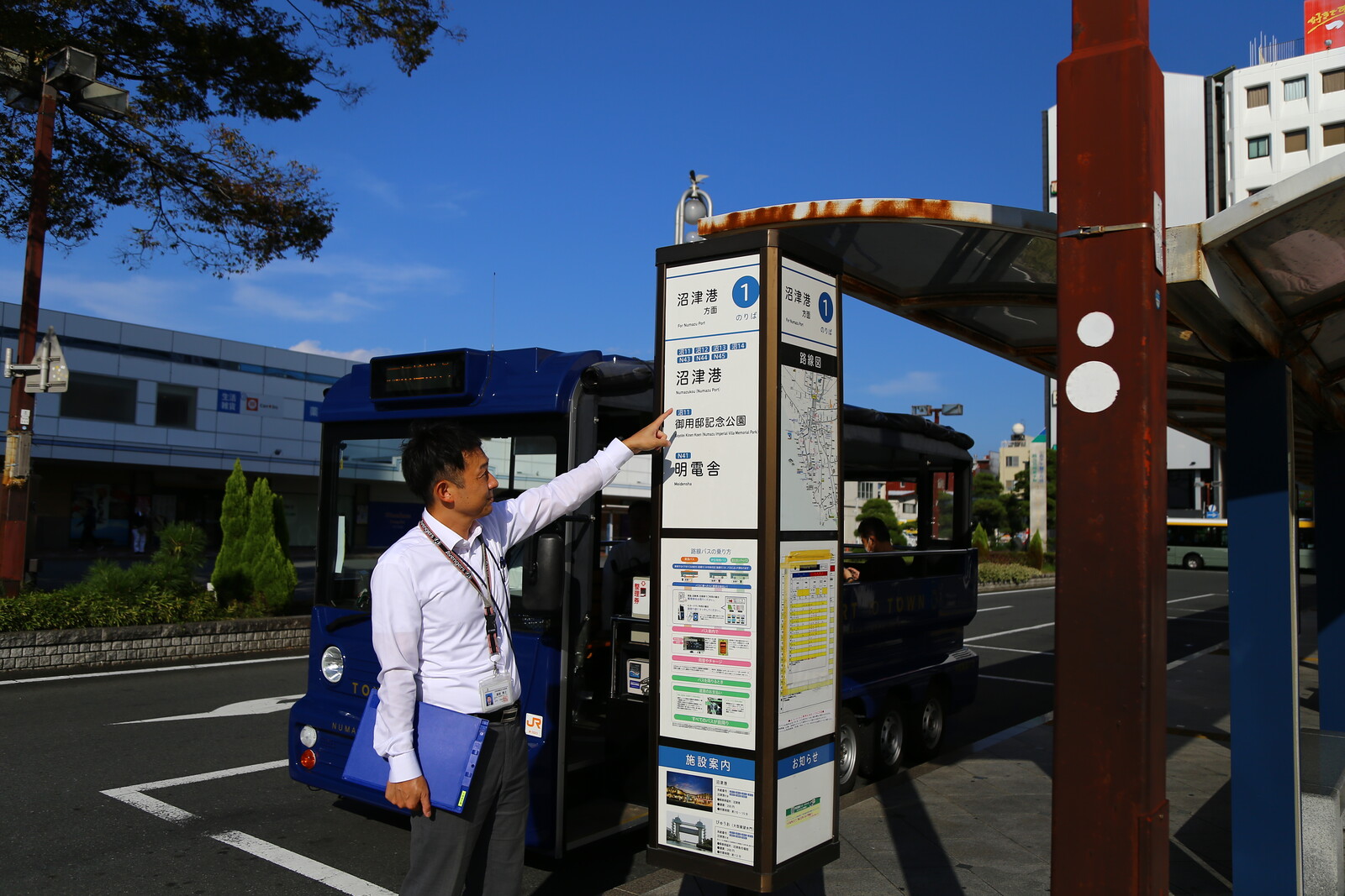 いい質問ですね(ニヤリ)。実はいろいろなアクセス方法を用意してるんです。まずはバス!沼津駅のバスターミナルの1番乗り場から出発する沼津港行きの路線バスが無料となるんです。