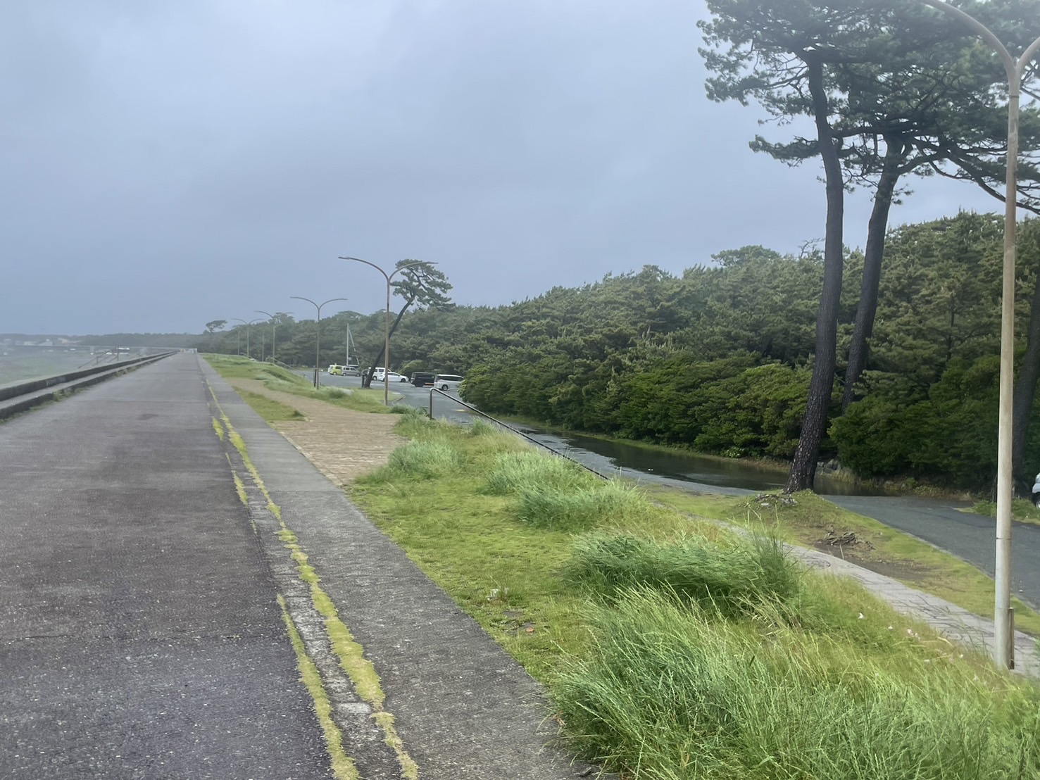 こういう日の千本浜もいいじゃない。携帯のストラップがヒラヒラしちゃってる。