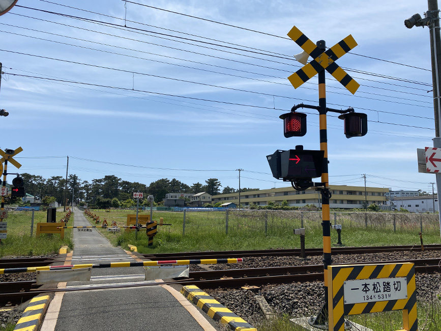 続いて一本松踏切。新貨物ターミナル用地のあたり。
