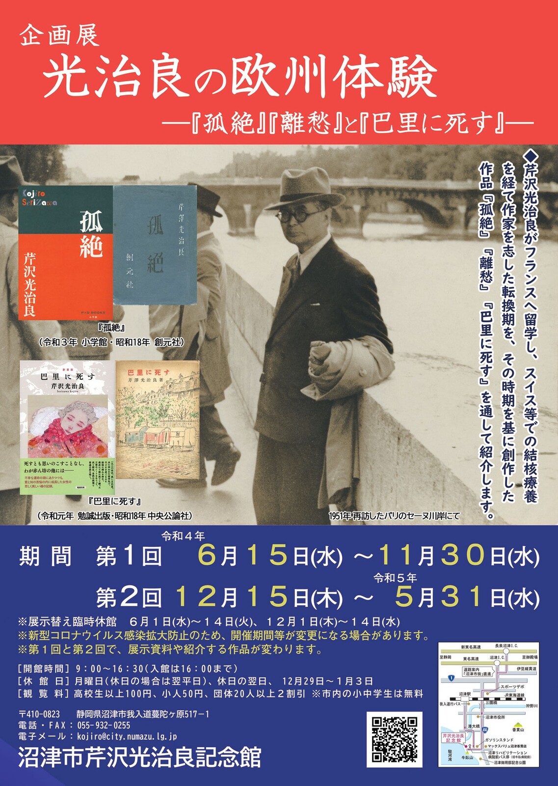 我入道公園のすぐとなりにある沼津市芹沢光治良記念館で企画展「光治良の欧州体験—『孤絶』『離愁』と『巴里に死す』—」(第2回)が開催されます。
