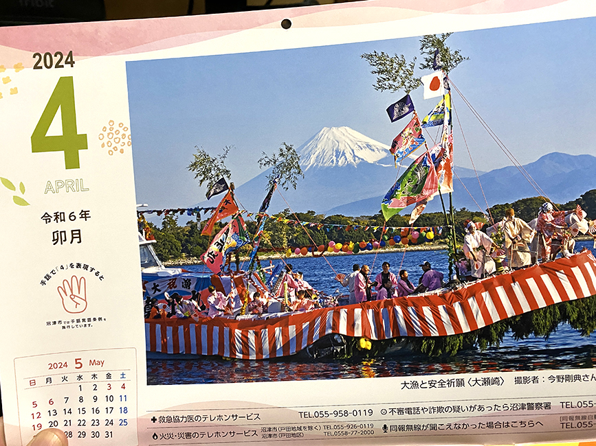 4月からの1年分の予定をニヤニヤしながら考えるのにもぴったりの市民カレンダー。沼津のキレイな写真を眺めながら令和6年度も楽しみましょう!!