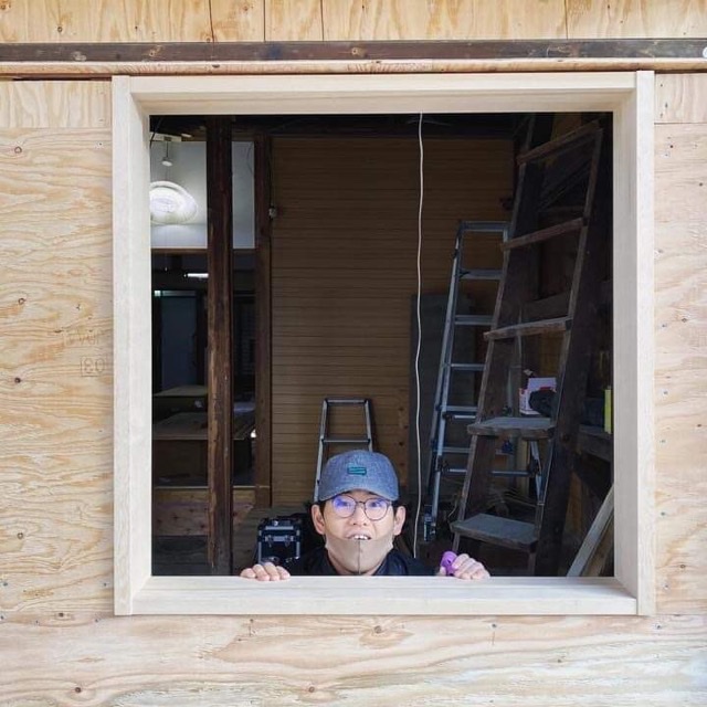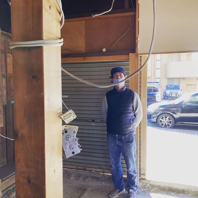 こちらの「シンマチ」は、リノベーションこうじ(工事)はもちろん、運営も行うらしい。ズボンがペンキまみれですね。