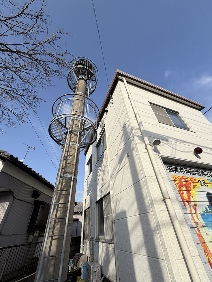 詰所の脇には、半鐘がついた火の見櫓的なものがそびえたっています。さすがにもう現役ではないと思いますがちょっとしたシンボル感がありますね。