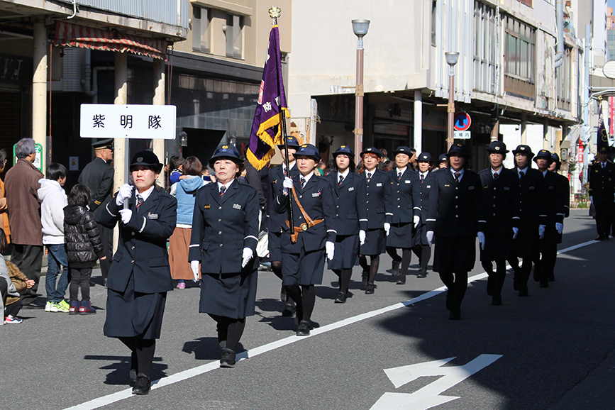 10時45分くらいになったらアーケード名店街あたりに移動して消防車とか消防団とかがパレードを敢行。