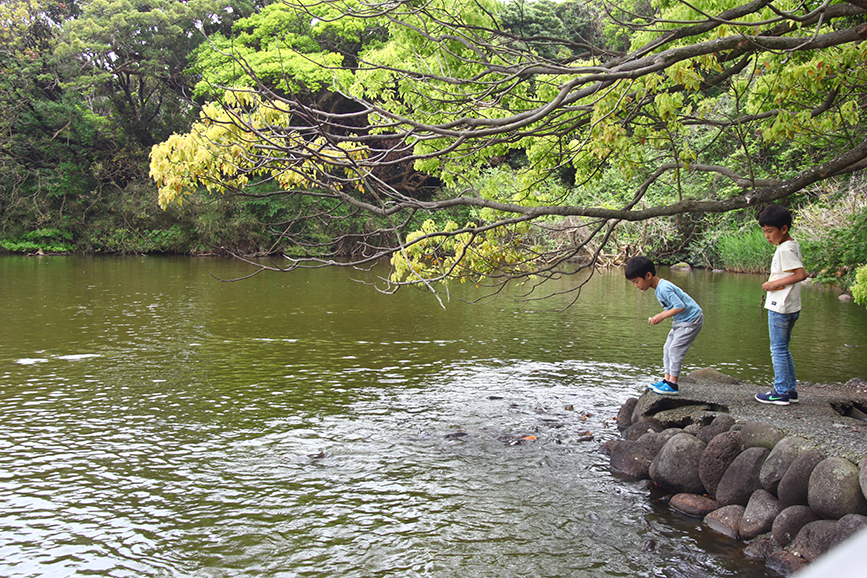 (大瀬崎に行ったら神池の鯉にエサをあげると面白い)