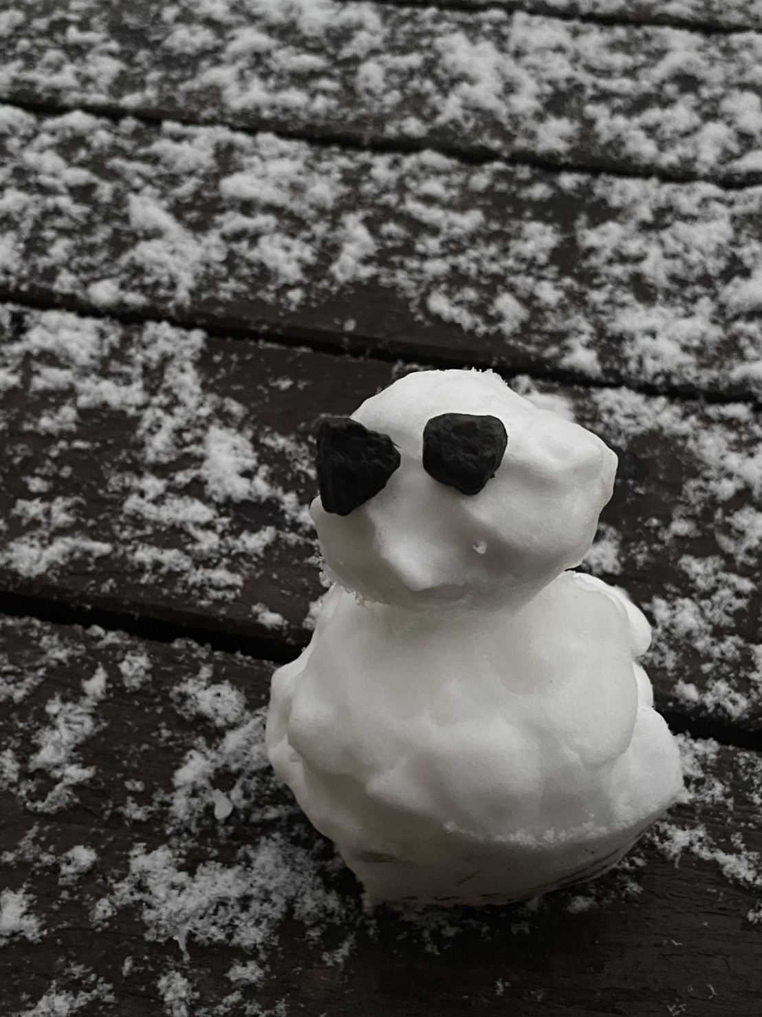 これはきのうの雪だるま君。