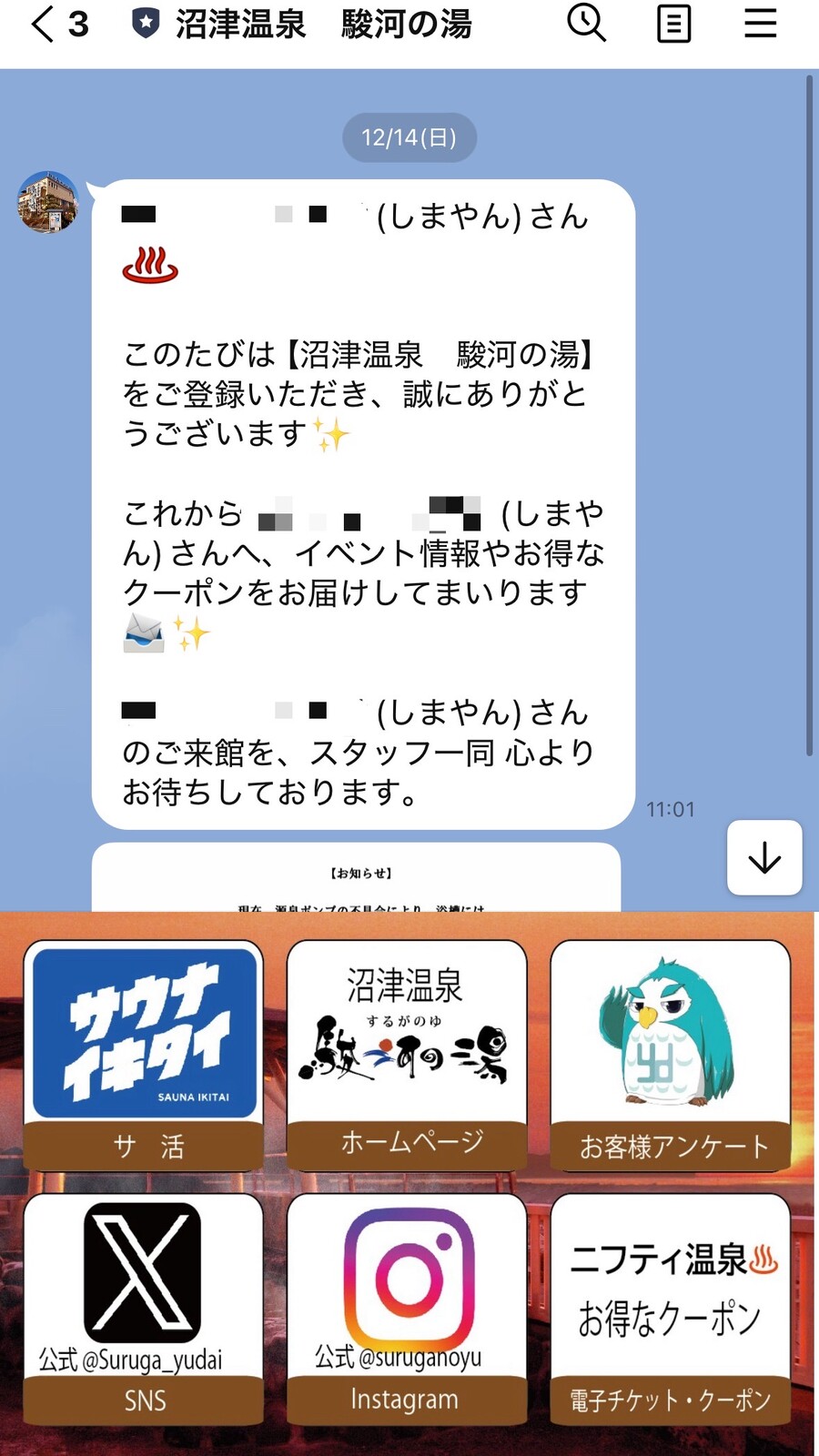 沼津温泉駿河の湯LINEより