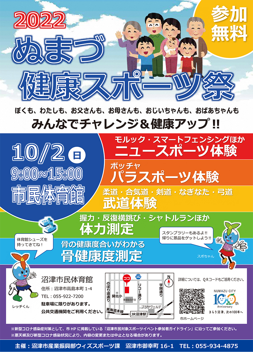 スポーツの秋!ということで、10月に「2022ぬまづ健康スポーツ祭」が開催されるそうです。