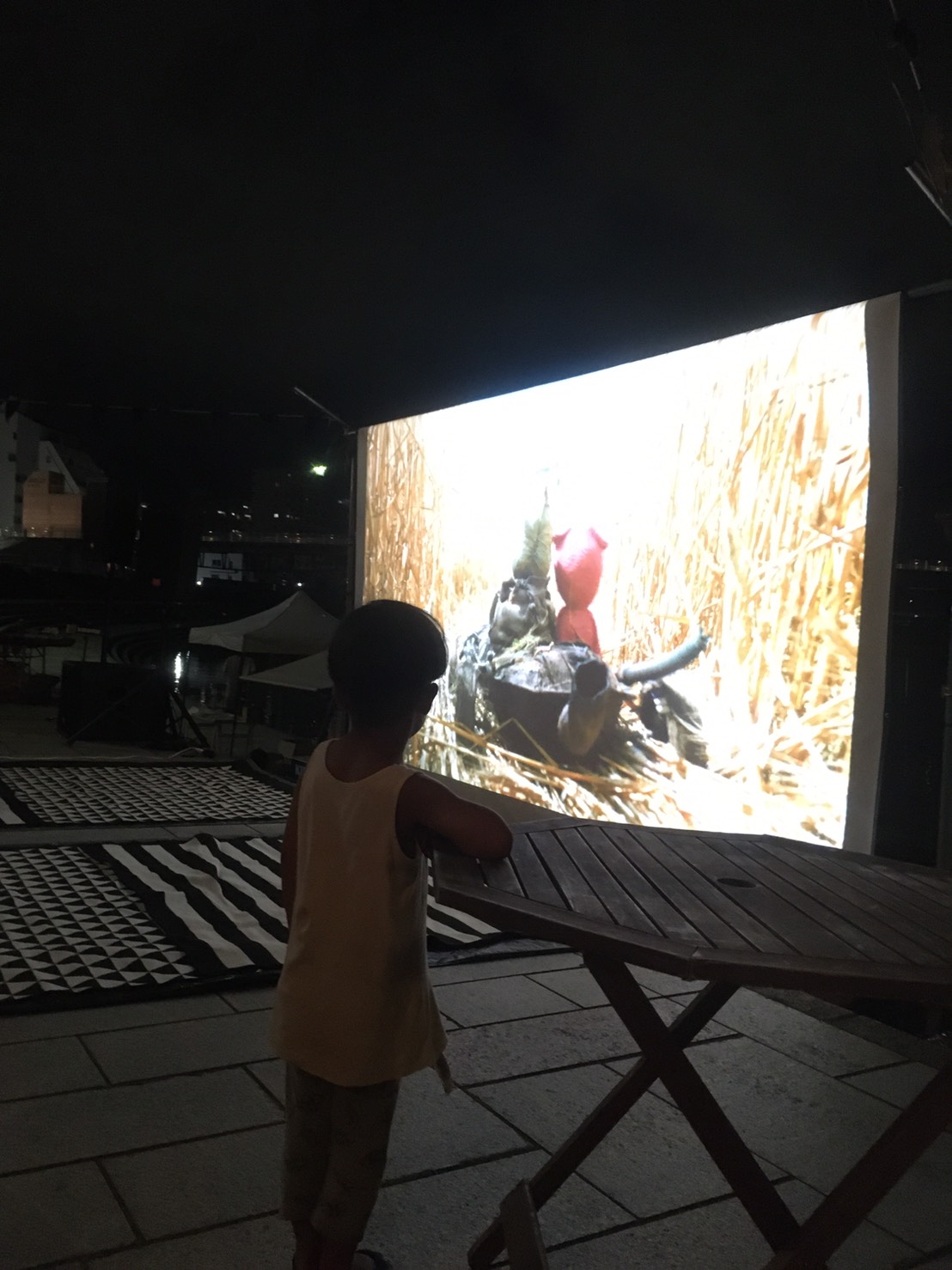 そして、暗くなってきた19時頃からスキマcinemaによる映画上映。