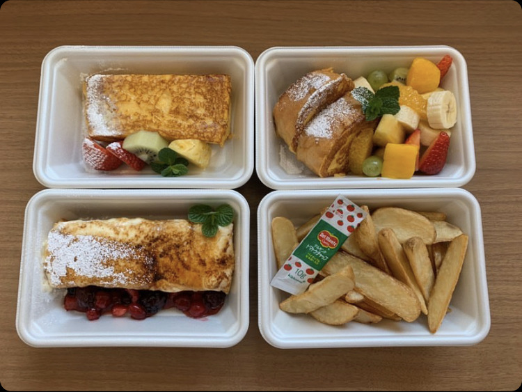 こぼれフルーツのフレンチトースト、山盛りフライドポテト