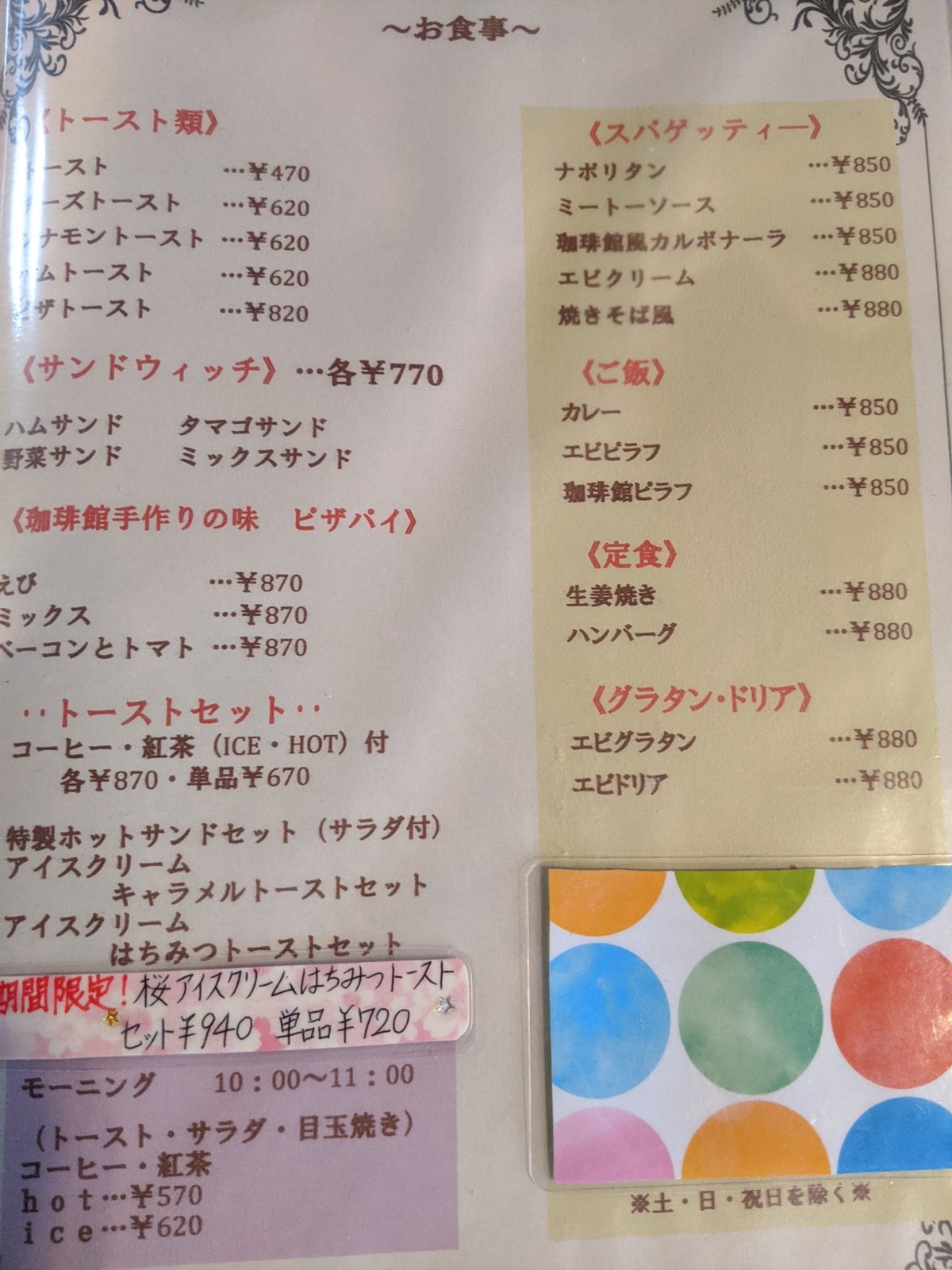 現在営業時間短縮中 9:00〜17:30(L.O.)