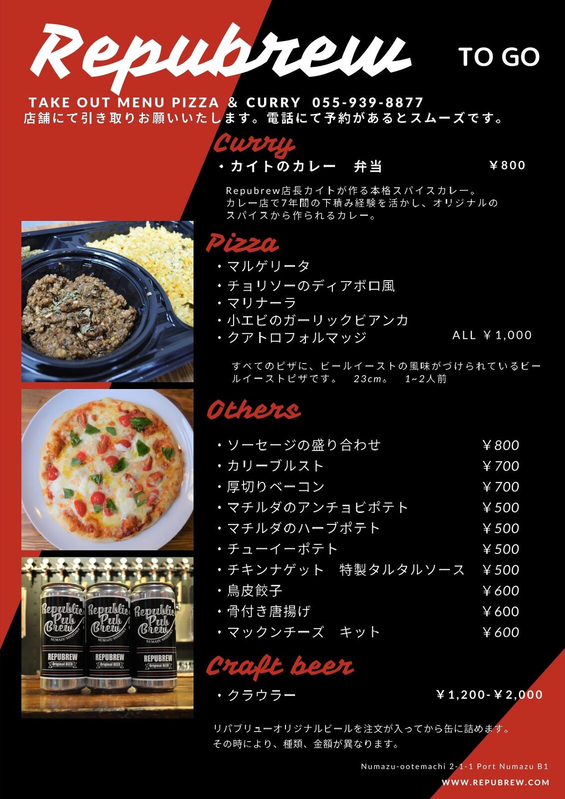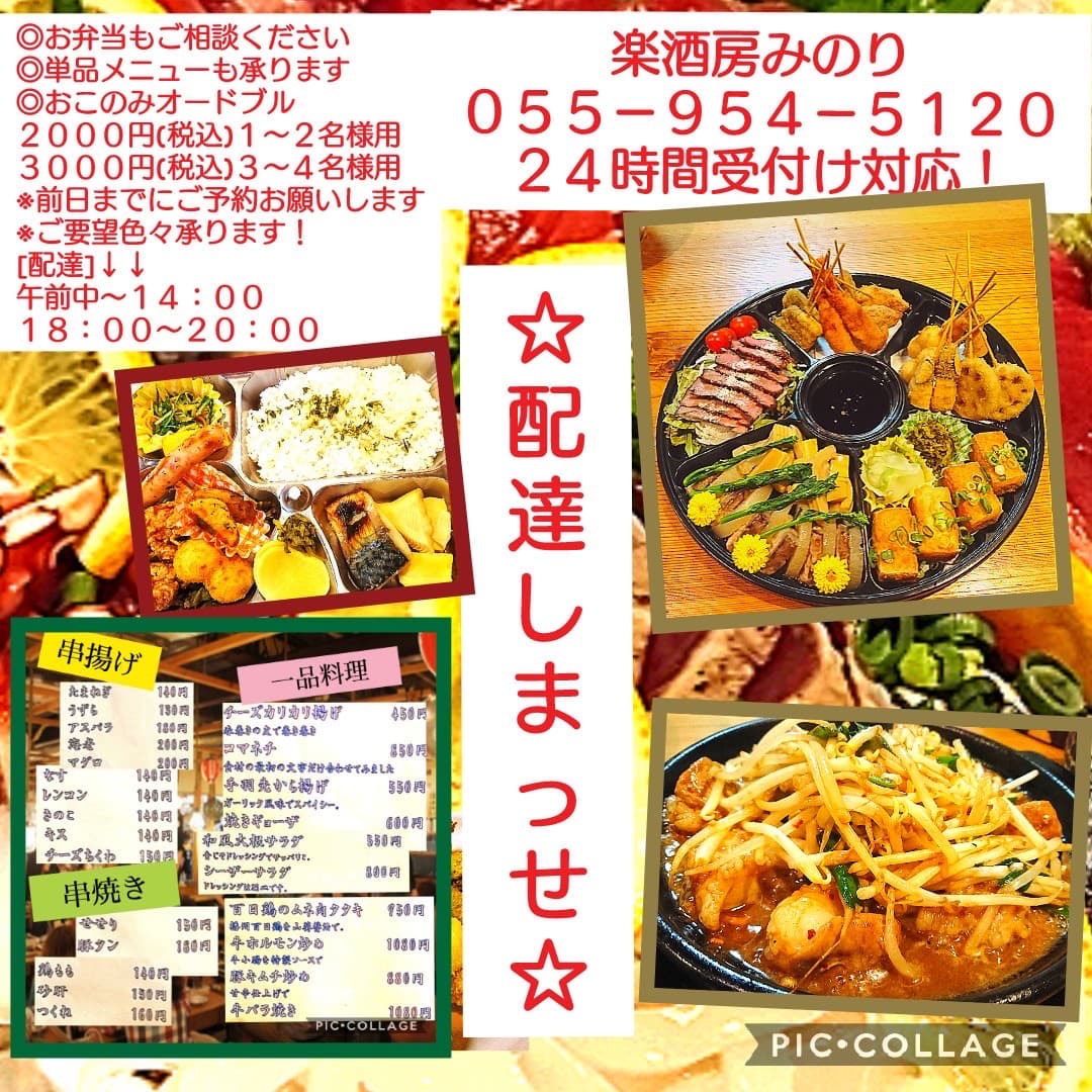 ご注文はお電話にて。テイクアウトは18:00~23:30まで。