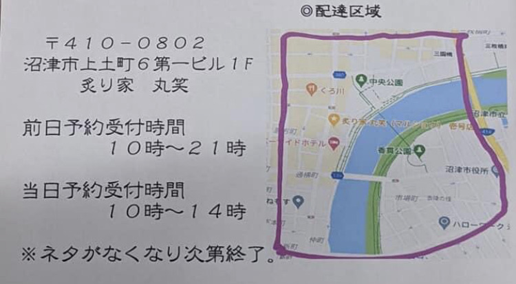 お渡し時間は15時~19時頃まで。要電話予約。