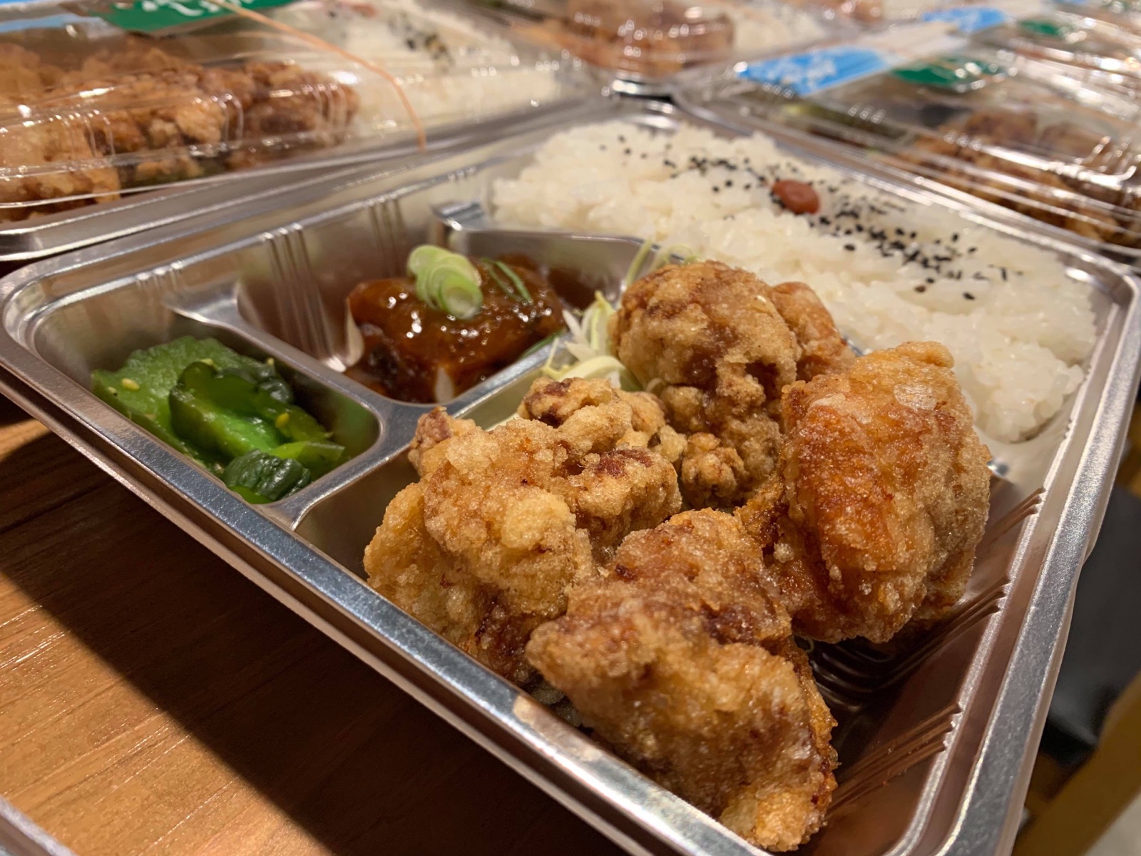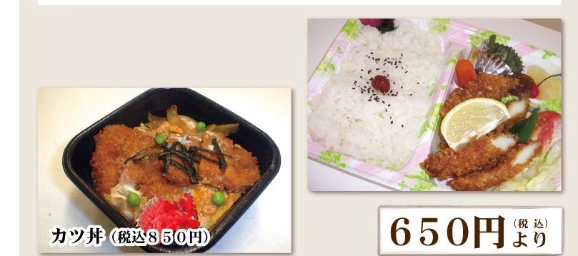 唐揚げ弁当、肉野菜炒め弁当、日替り弁当など