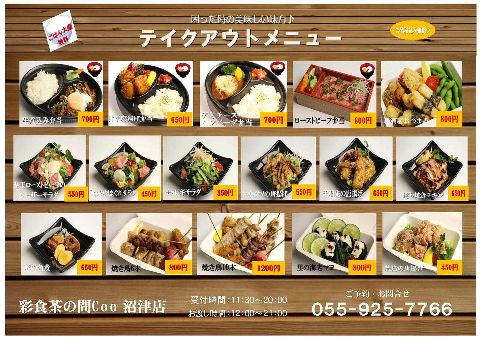 テイクアウト対応時間 11:00〜13:30 17:00〜20:00