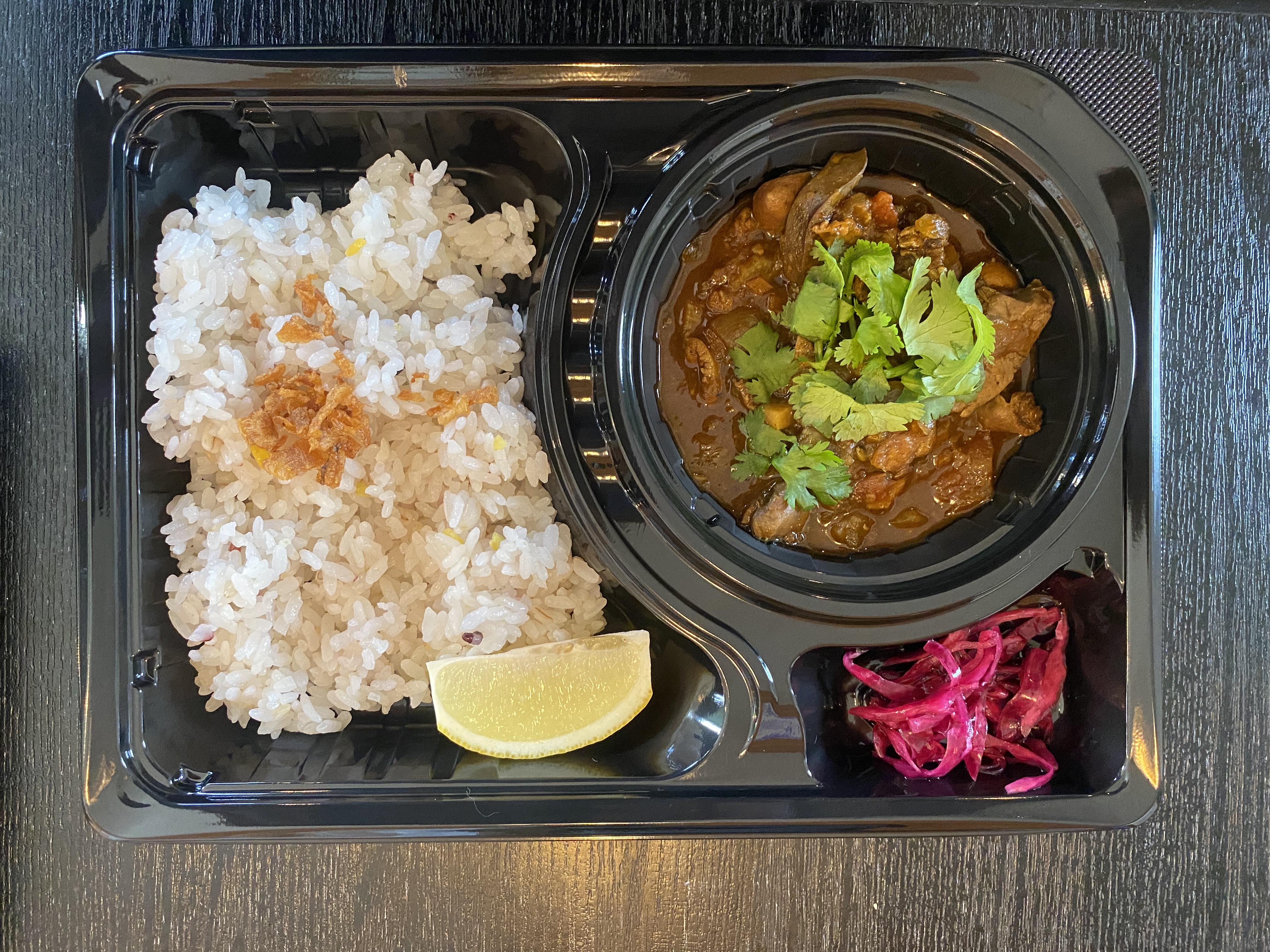 テイクアウトの受け渡し時間は12:00~18:00(火~土)電話予約すると受け渡しがスムーズ。新たにテイクアウトに加わったのが「スープ ガルビュール」と「チキンカレー」ガルビュールはお豆とキャベツなどの野菜をたっぷり煮込んだフランスの田舎スープ。 真空冷凍 1パック 2人前。デザートのカスタードプリンは2個 500円。