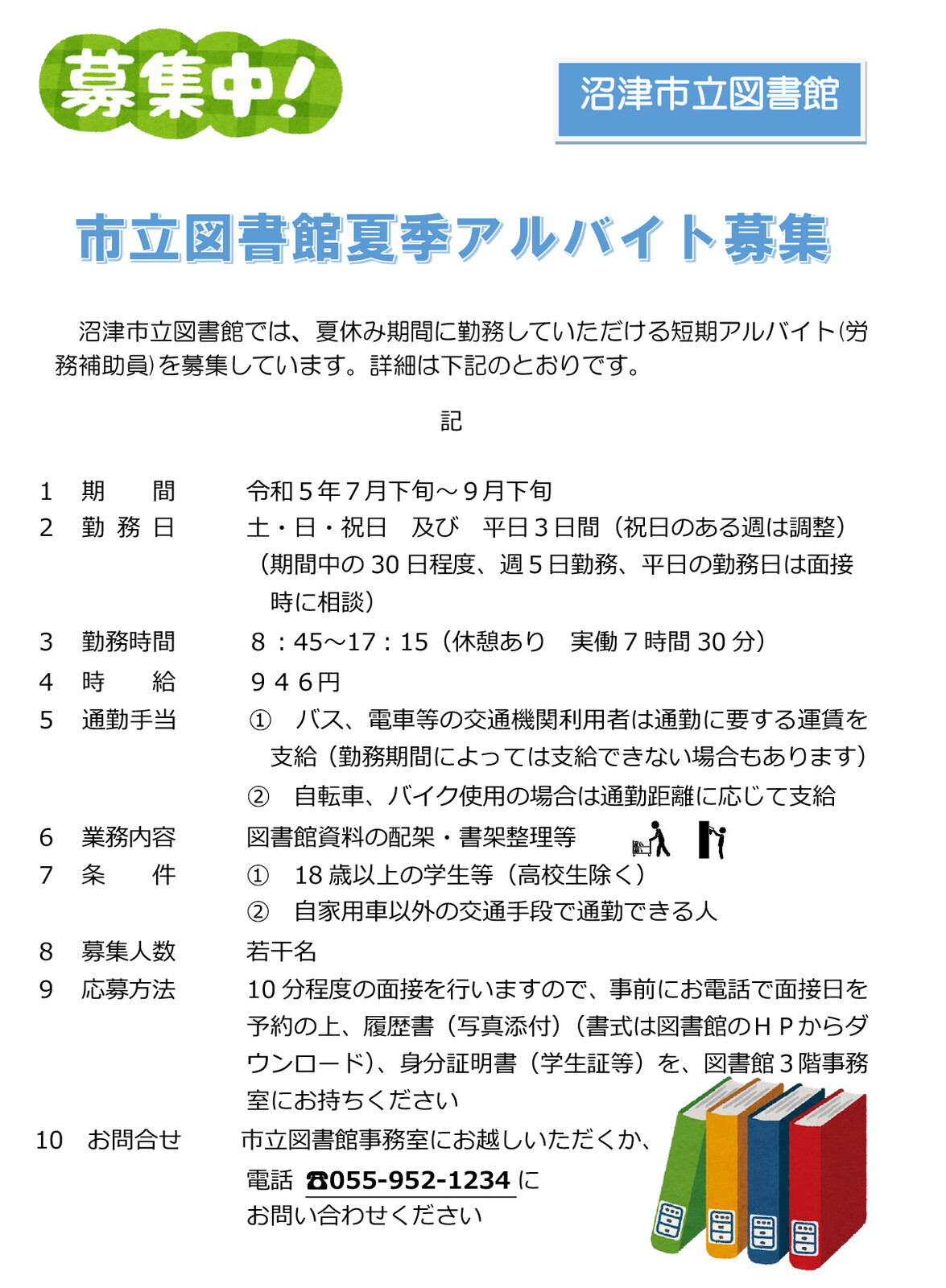 図書館でアルバイト募集中!涼しそうだし、夏にいいかも!