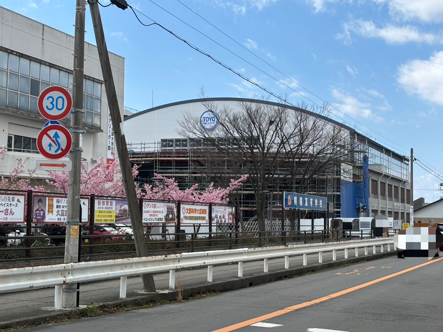 とうよー高校、新体育館つくってる。2025年春完成予定だそう。より