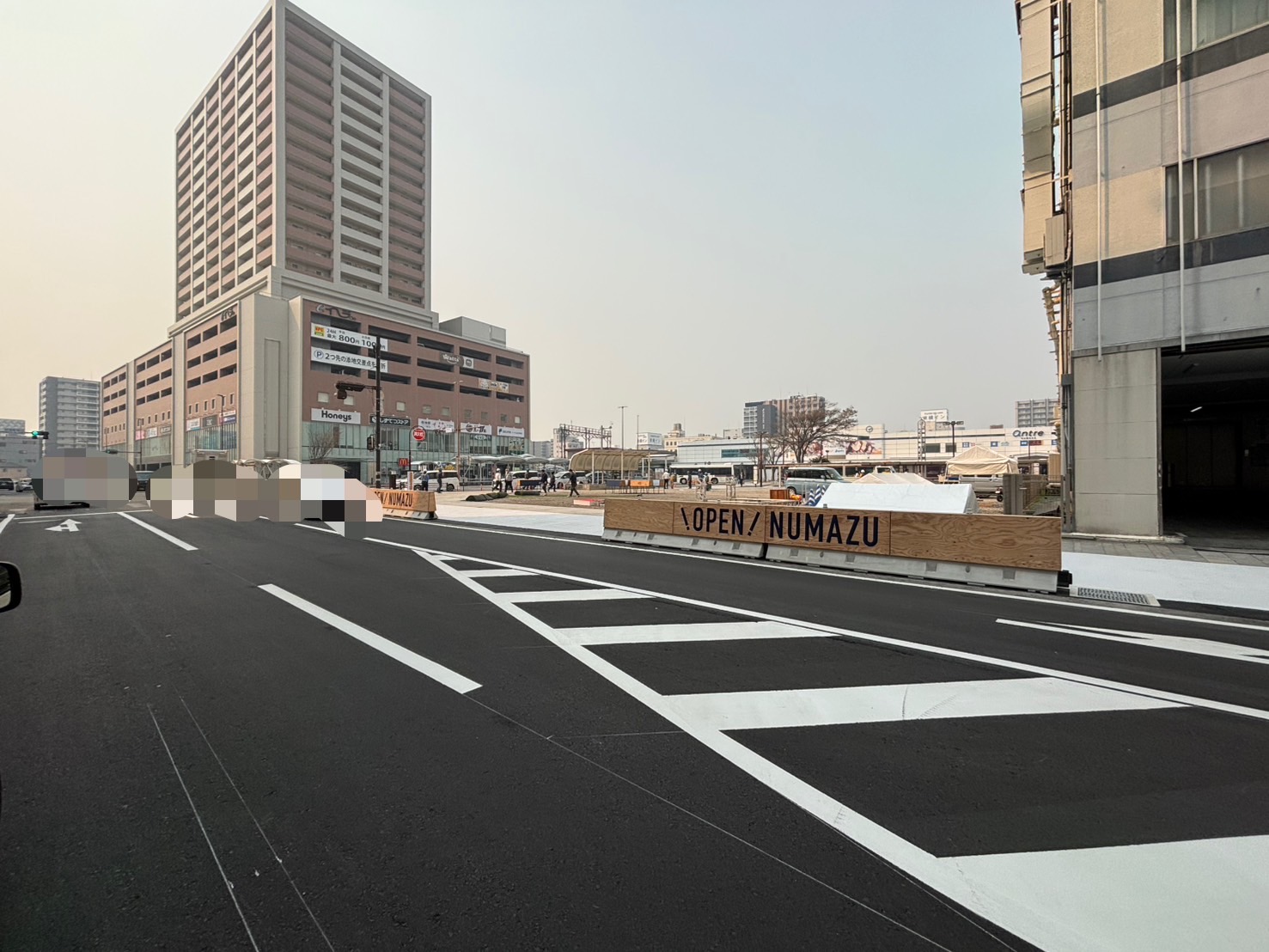 沼津駅南口の西武だったところらへんの沼津駅南口交差点、南北地上横断化工事。