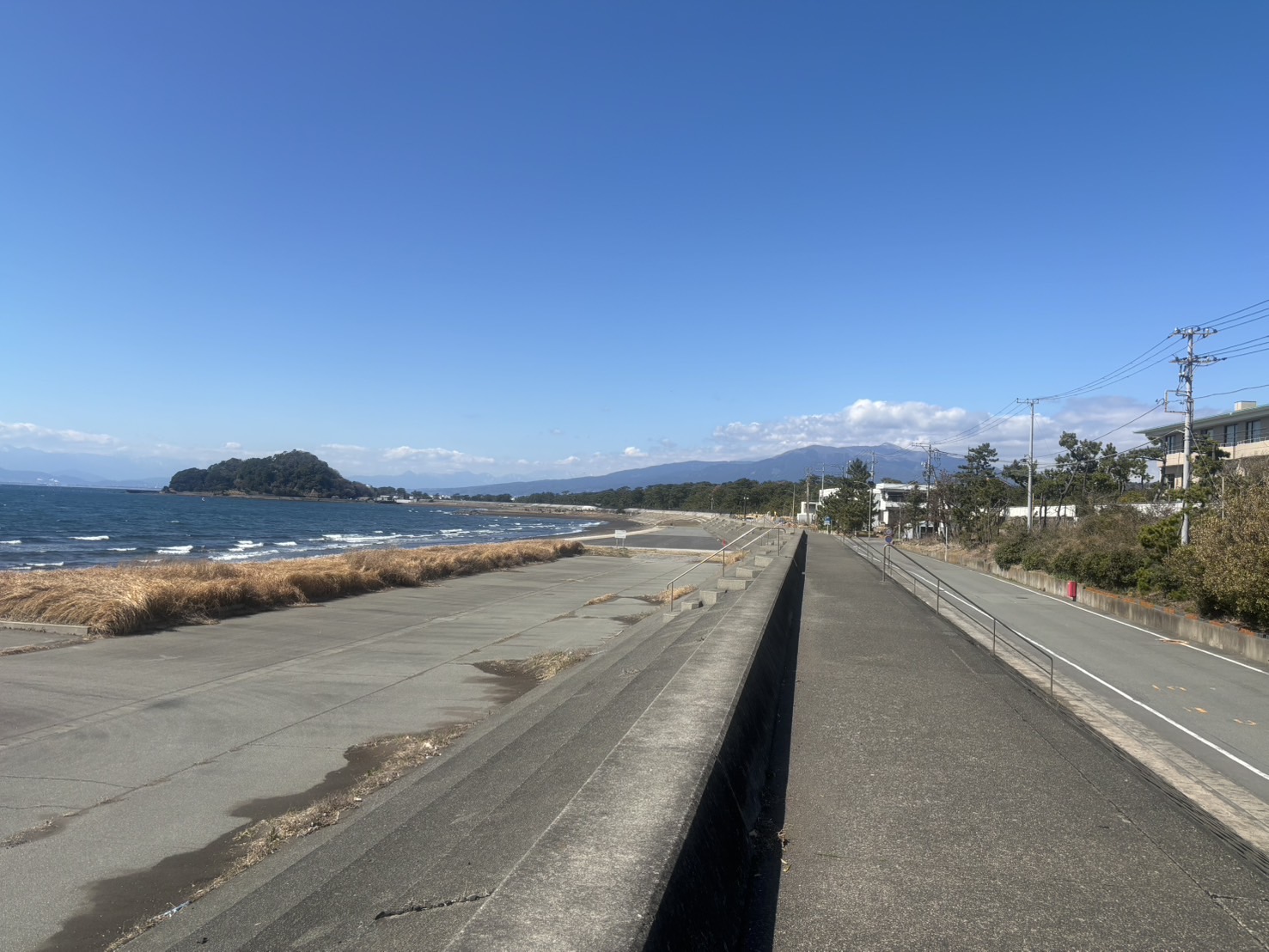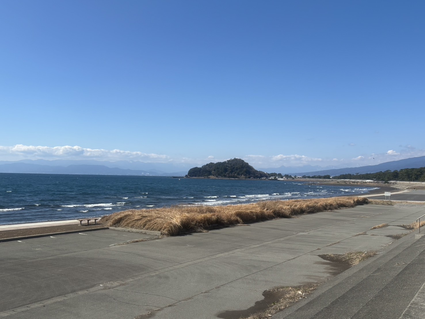 おととしのお正月は、ここで凧揚げをやったんだけど、きょうの風の強さならいい感じに凧揚げを楽しめるなぁ。タコ持ってくりゃよかった。ってか、ここは電線とかもないし、沼津で凧揚げするなら最高のスポットだわ。