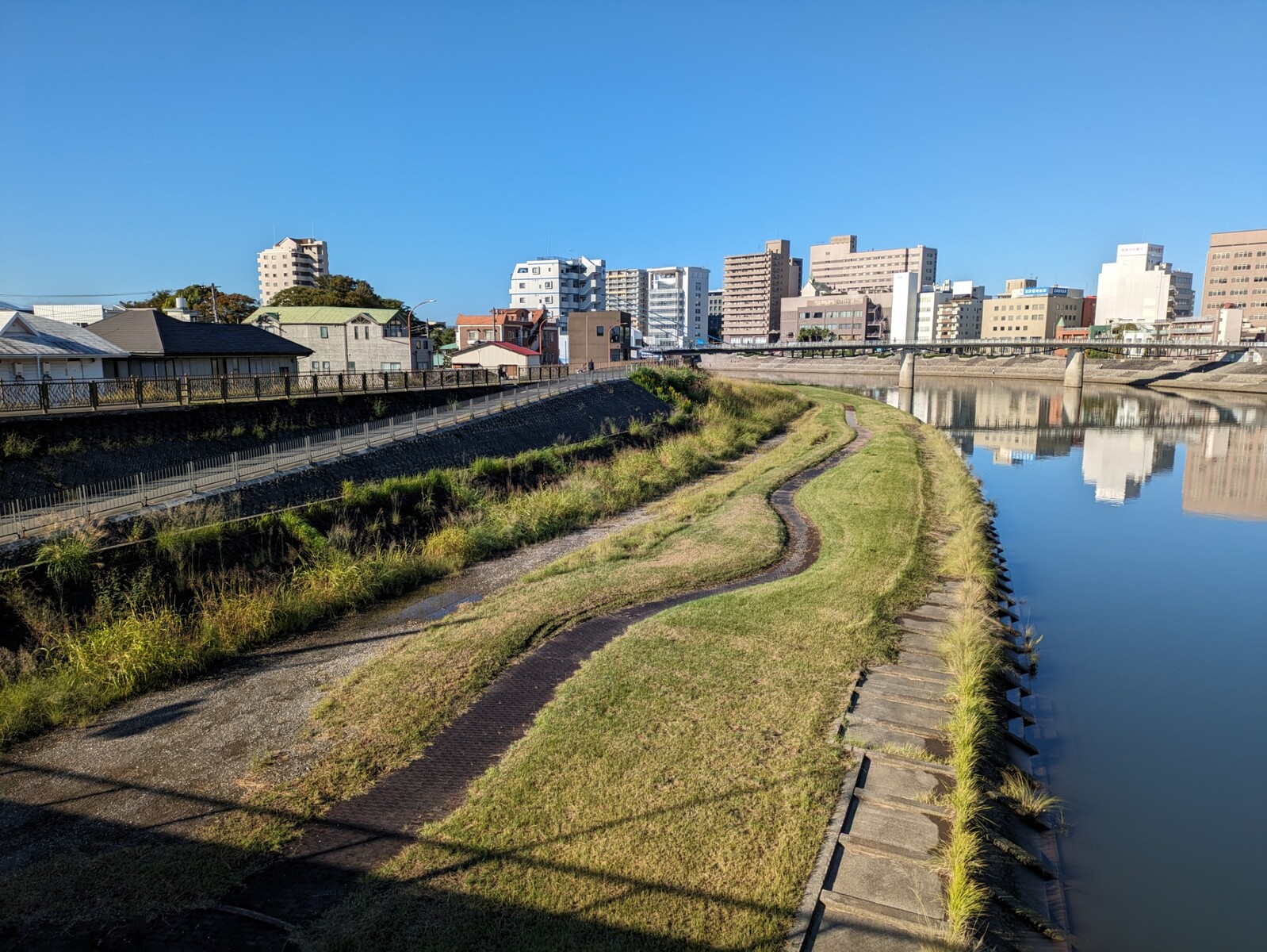狩野川にもススキが生えまくってた。芝生もなんか秋っぽい色になってる。