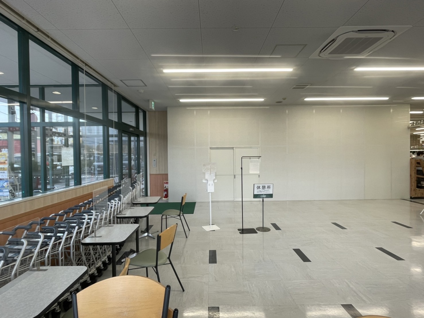壁になってた。椅子とテーブルはマックだった時のものかしら。休憩所になってる。