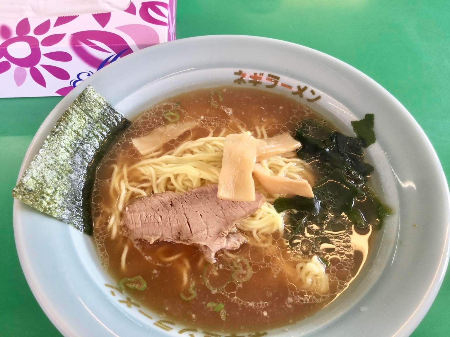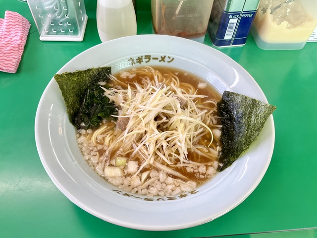 ごま油と細切れチャーシューをあえた白髪ねぎがどっさり。どんぶりにもネギラーメンって書いてある。イチ押しなんだな。