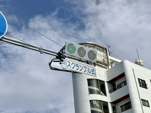 斜め方向にも信号機があるのね。知らなかった