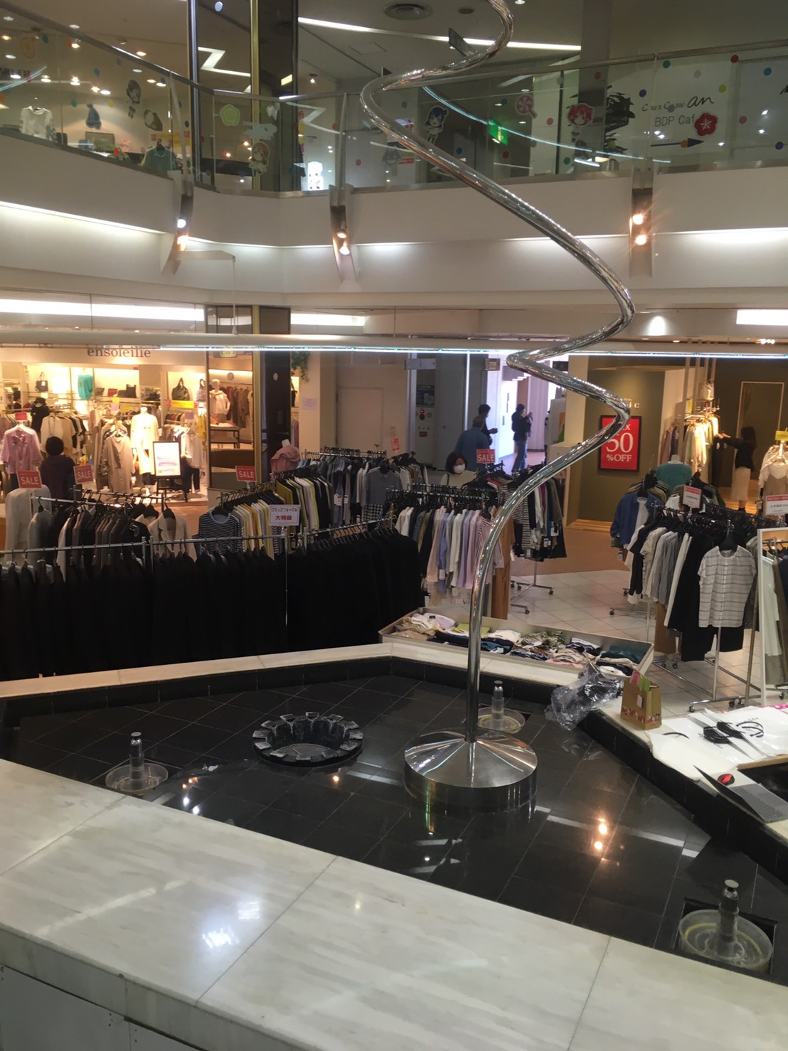 イシバシプラザ名物のクネクネ噴水も健在。