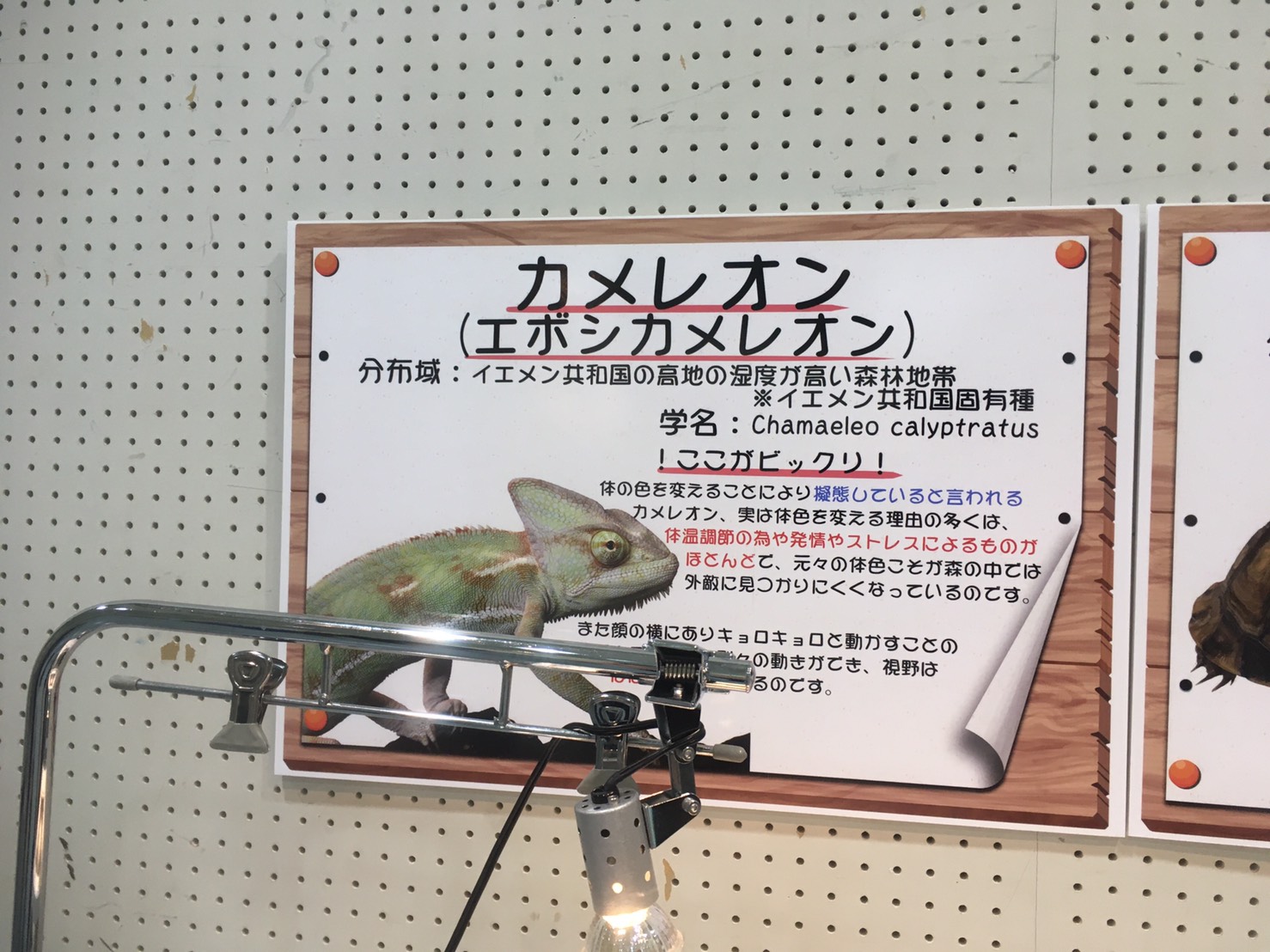 一番最初は、カメレオンさんがお出迎え。