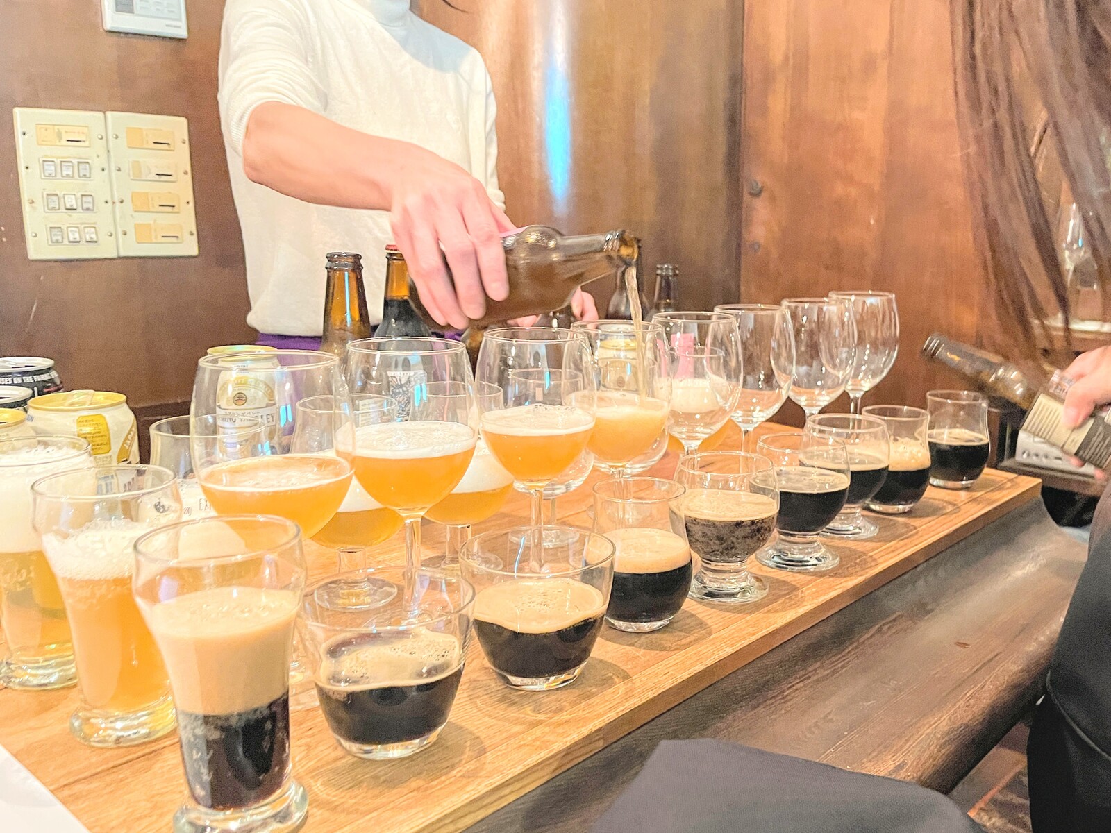 いろんな形のグラスに注がれていきます。これだけあればタワーができそう。