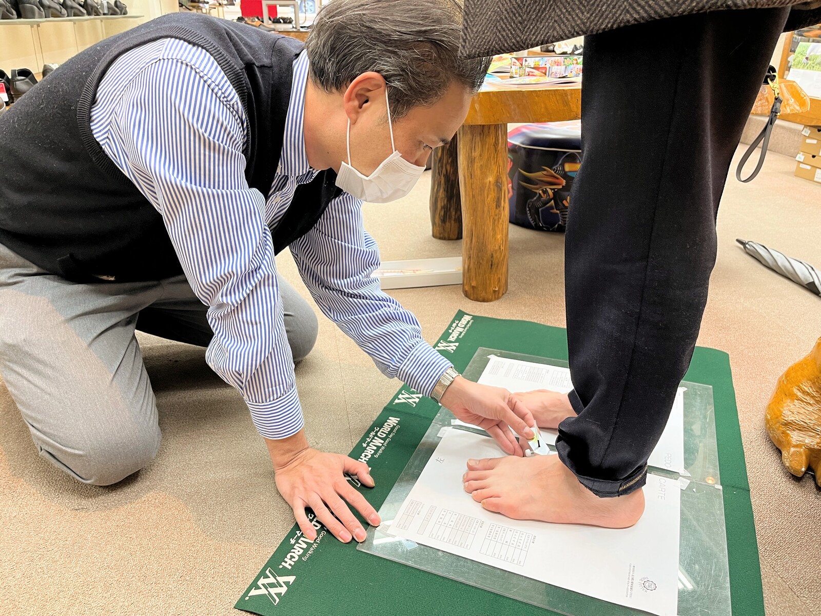 リーガルとワシントン靴店では、ご専門の方がシューフィッティングをしてくださるそう。自分だけの足のカルテを作ってくれるんだって。