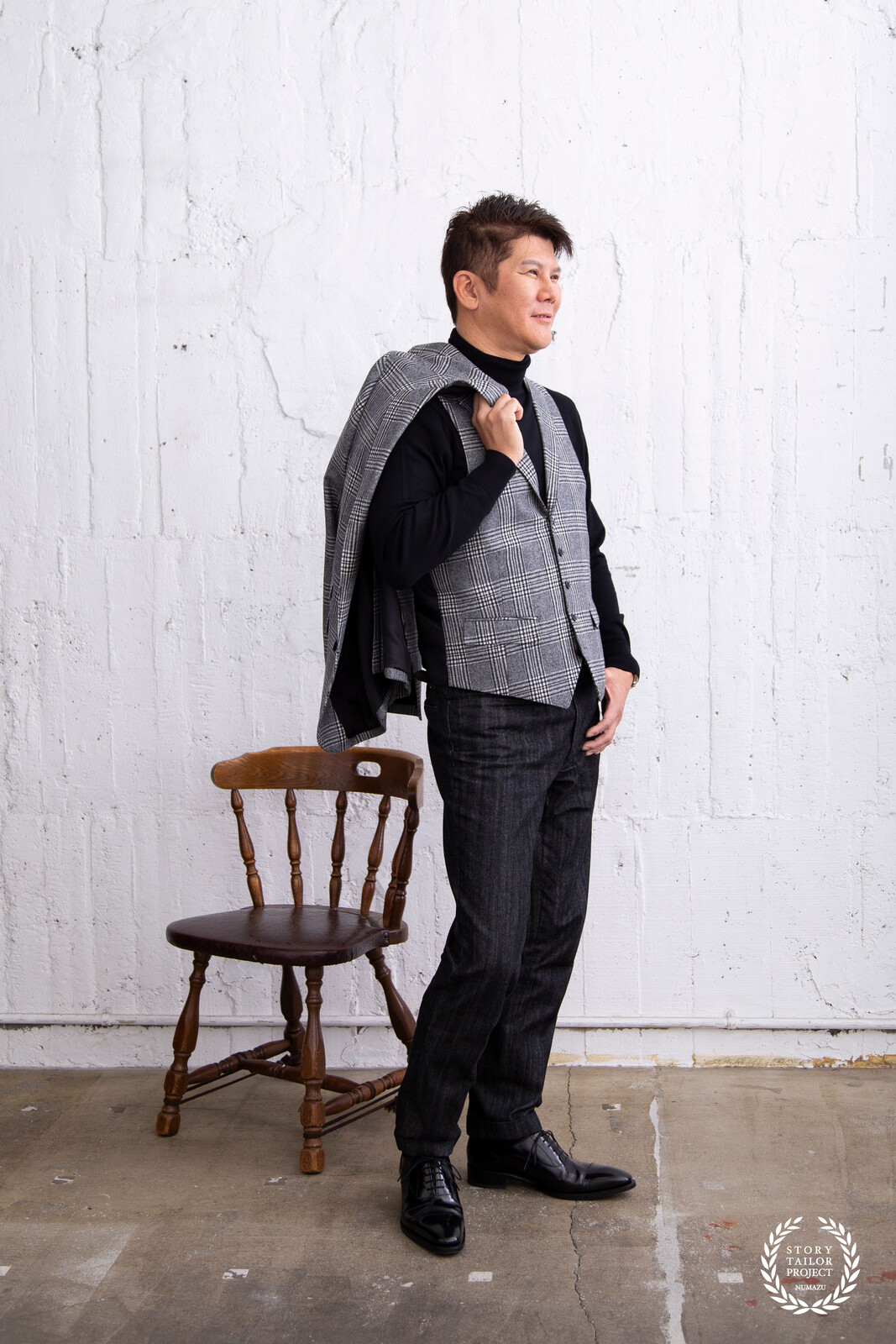 ご本人も超絶ダンディ。「脚が長く見えるように、ちょっと下から撮ってよ」とお茶目な一面も。