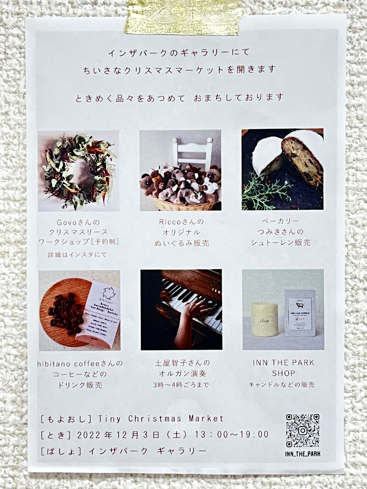 12/3(土)にINN THE PARKでちいさなクリスマスマーケットが開かれるみたい(沼津市足高)