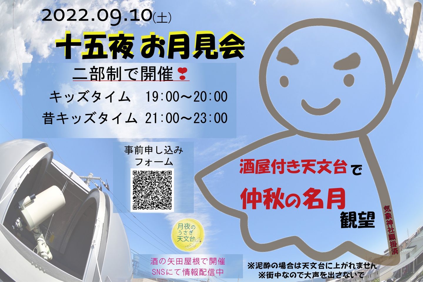 その月夜のうさぎ天文台で十五夜お月見会があるそう。