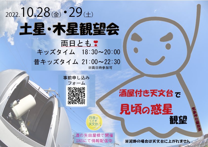土星と木星がスマホで撮影できるらしい。きょう10/28(金)・明日10/29(土) 「月夜のうさぎ天文台」で観望会(沼津市岡宮)