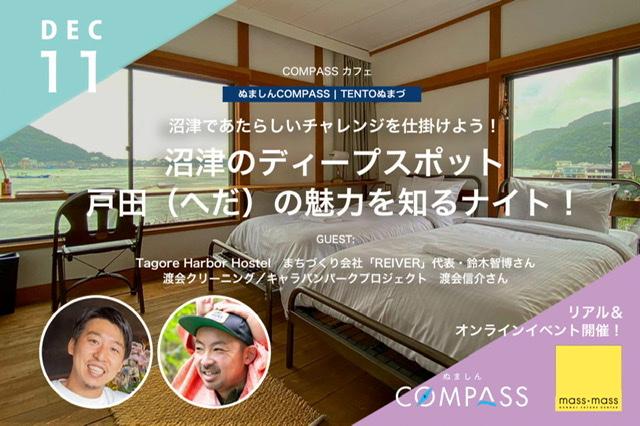 <沼津&オンライン配信開催!>【12/11】沼津であたらしいチャレンジを仕掛けよう!| 沼津のディープスポット・戸田(へだ)の魅力を知るナイト!
