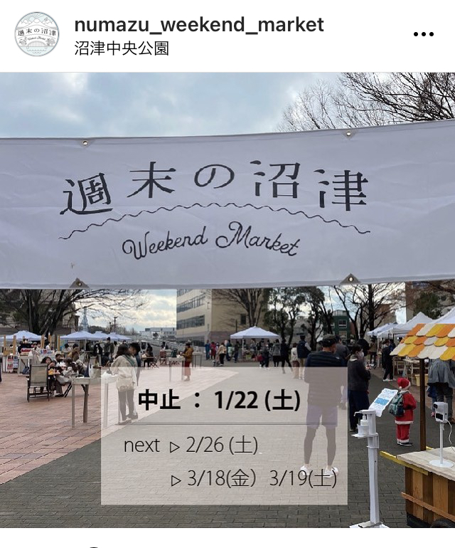 【あす22(土)中止】オシャンな定期マーケット週末の沼津。次回は2/26(土)予定。沼津中央公園