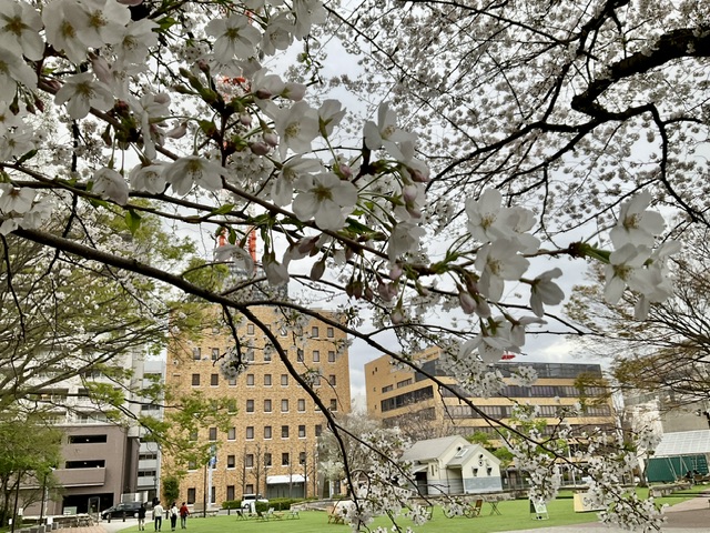 桜が満開の時期に入学式で、今年の新入生はツイてますね。