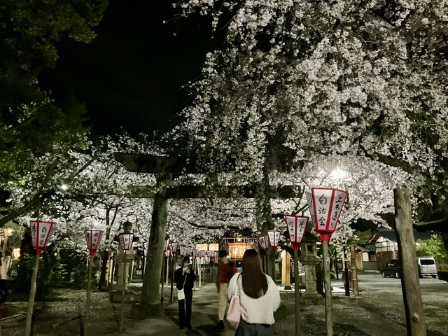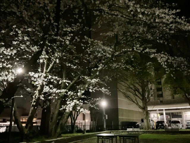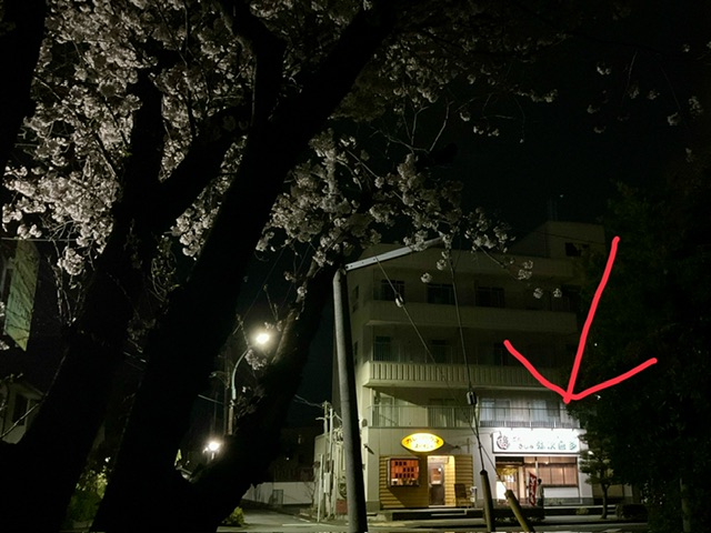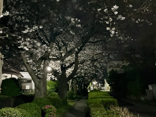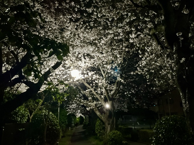 お腹もパンパンだし、夜桜を愛でつつ帰りましょう。