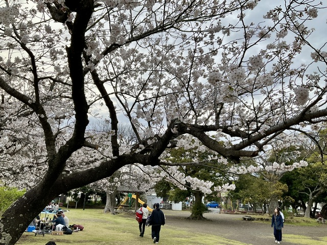 山王公園にはシートを広げてお花見を楽しむグループが。