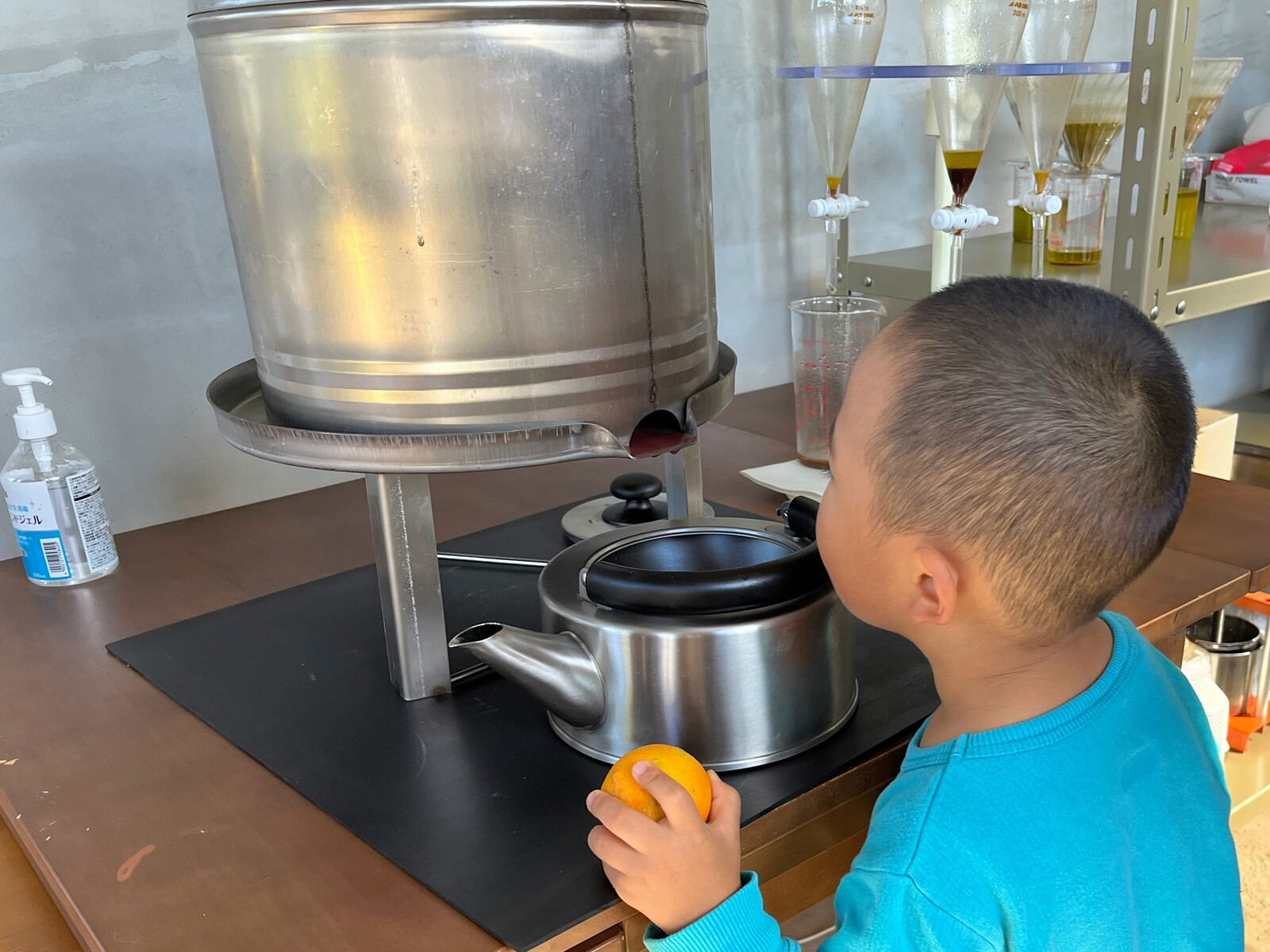果汁を搾って、油分と水分にわけます。