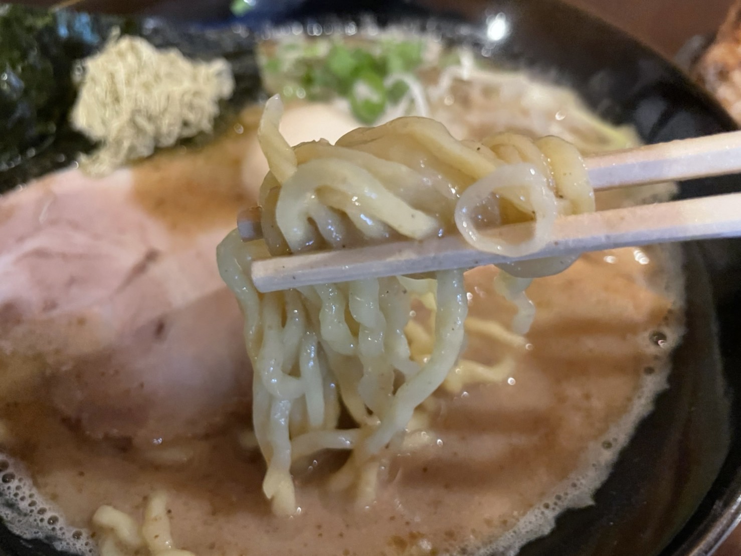 麺は中太ちぢれ系。プリプリの麺に魚介豚骨スープがしっかり絡んでくる。