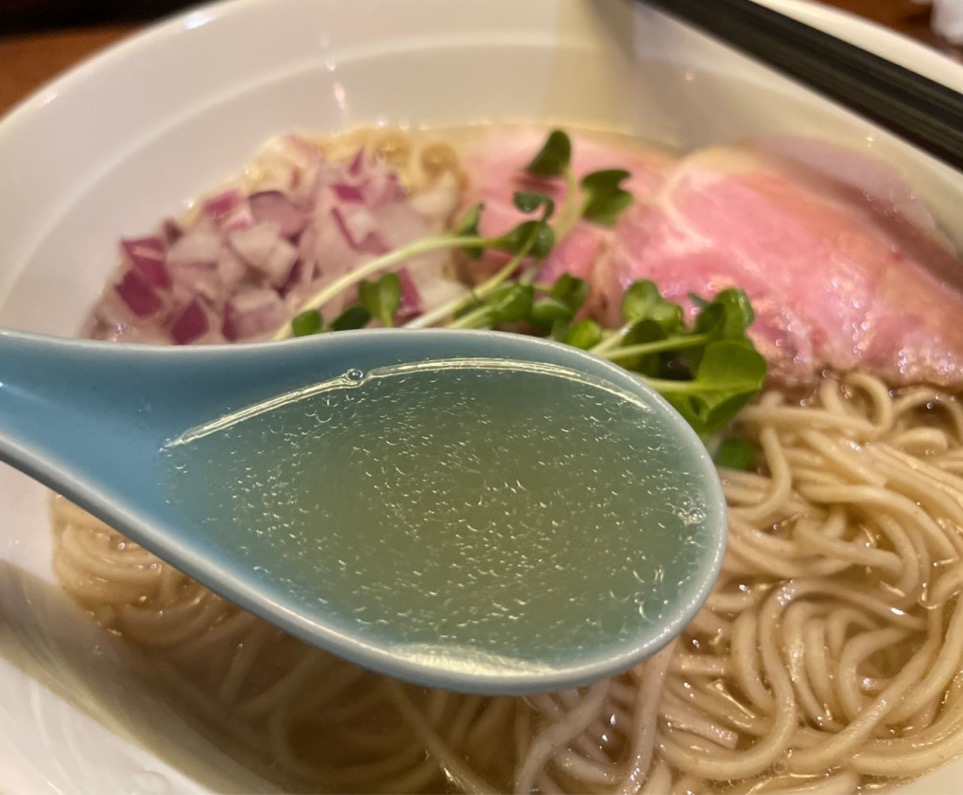 透き通ったスープは煮干しの風味がめっちゃ香る。うまー!普通の日に食べてもいいし、二日酔いの日にも最高そう。
