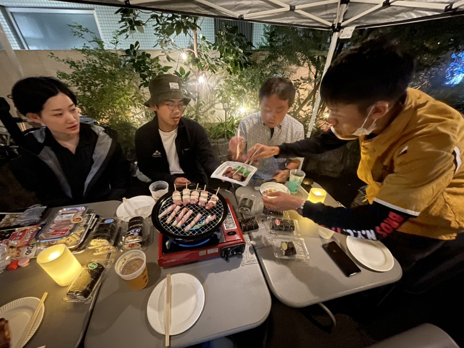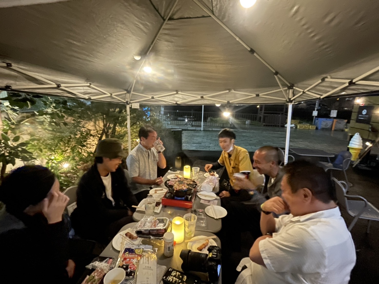 沼津市内のやきとりやお肉を買ってきてひたすら「おいしいね♪」とか言い合う村民会議です。ぬまつー村民と今回もぬまつー村民じゃなくても参加OKで・・・雨の中やってますwww。食べ物は投げ銭方式。