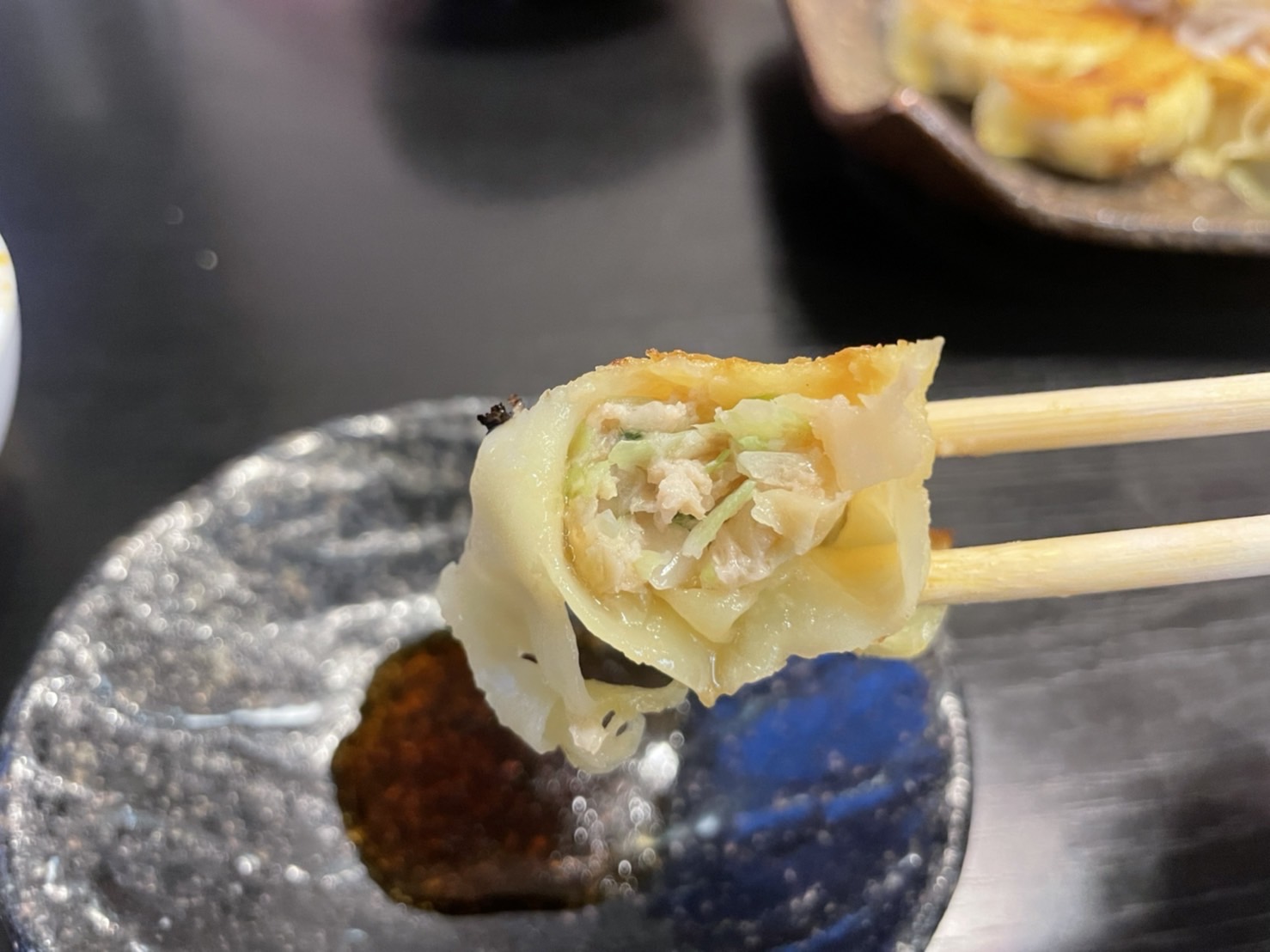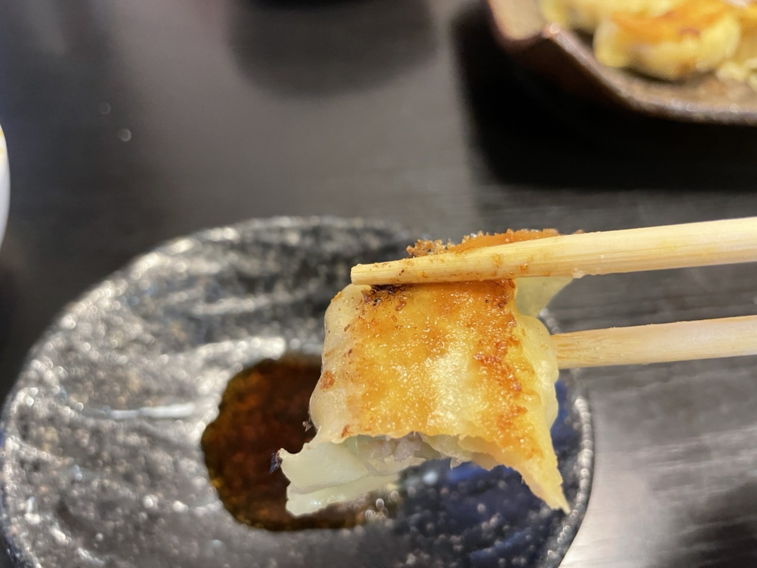 餃子の皮は焼き面がパリパリでめっちゃ香ばしい。