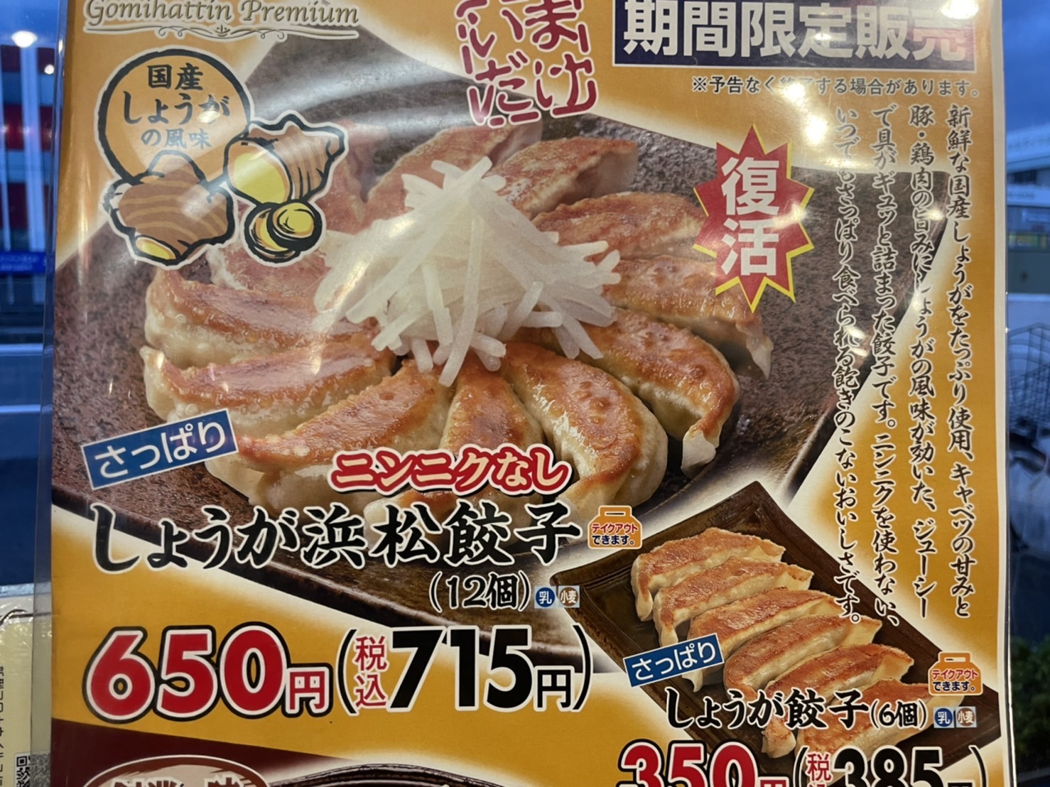 特にこのあとデートとかがあるわけじゃなかったけどニンニクなしさっぱりしょうが浜松餃子(12個)を注文。