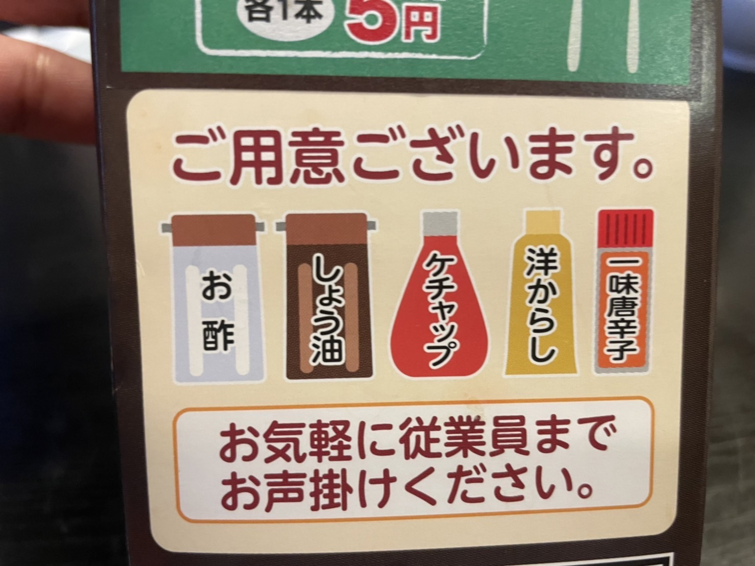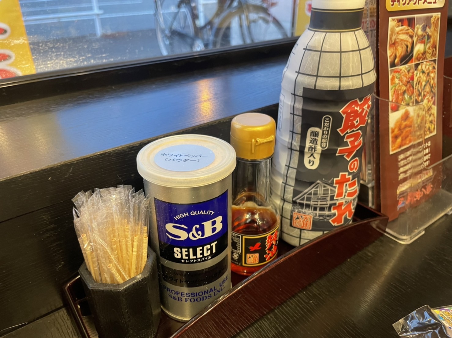 卓上の調味料をチェックしつつ、